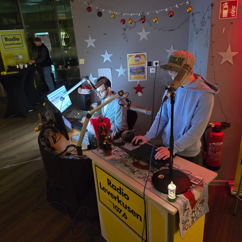 On Air für einen guten Zweck: Radio Leverkusen nutzte unser mobiles Studio und sammelte wieder Geschenke für Kinder und Jugendliche in der Stadt, die sonst nichts zu Weihnachten bekommen würden. Zwölf Stunden Livesendung aus dem gläsernen Weihnachtsstudio – ohne eine Dropout. Dank der intelligenten Nutzung moderner Übertragungstechniken mittels Teltonika Networks Routern, Bondix SIMA und Prodys Quantum ST Codecs konnten wir selbst unter technisch schwierigen Bedingungen eine stabile Verbindung zwischen Außenstudio und der Zentrale herstellen, den vor Ort gab es nur die Netzanbindung über 2x LTE. Das Team von Radio Leverkusen hatte über DABiS800 Zugriff auf alle Elemente und die bekannte Audio-Ablagestruktur, die sie auch im täglichen Betrieb kennen. Das DHD Mischpult wurde konfigurativ an das Studiolayout angepasst. Drei Moderatoren-Teams konnten so in den 12 Stunden über 700 Geschenke und knapp 2400€ an Spendengeldern für Kinder in Not in Leverkusen generieren.